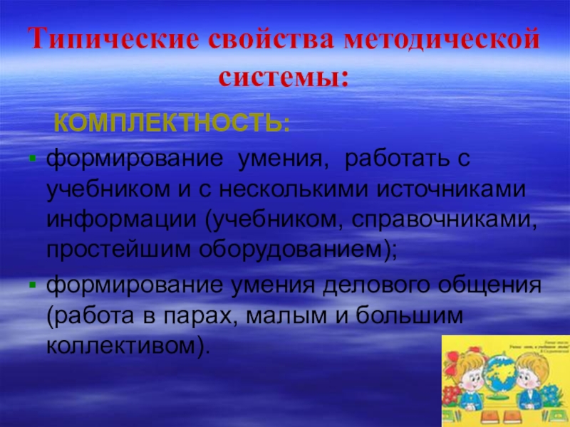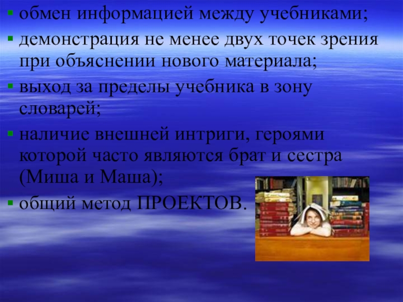 максимальное размещение методического аппарата в корпусе учебника, рассчитанного как на индивидуальное выполнение заданий, так и на парную или групповую работу.
