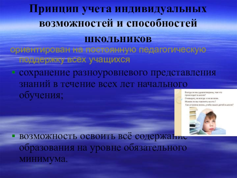 Слайд 12Принцип учета индивидуальных возможностей и способностей школьников