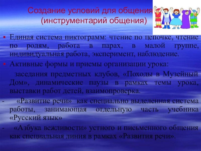 - «Азбука вежливости» устного и письменного общения как специальная линия в рамках «Развития речи».