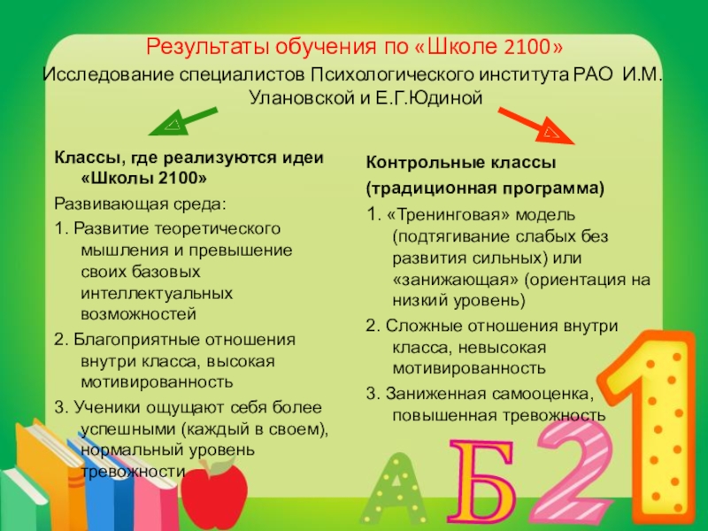 2. Благоприятные отношения внутри класса, высокая мотивированность