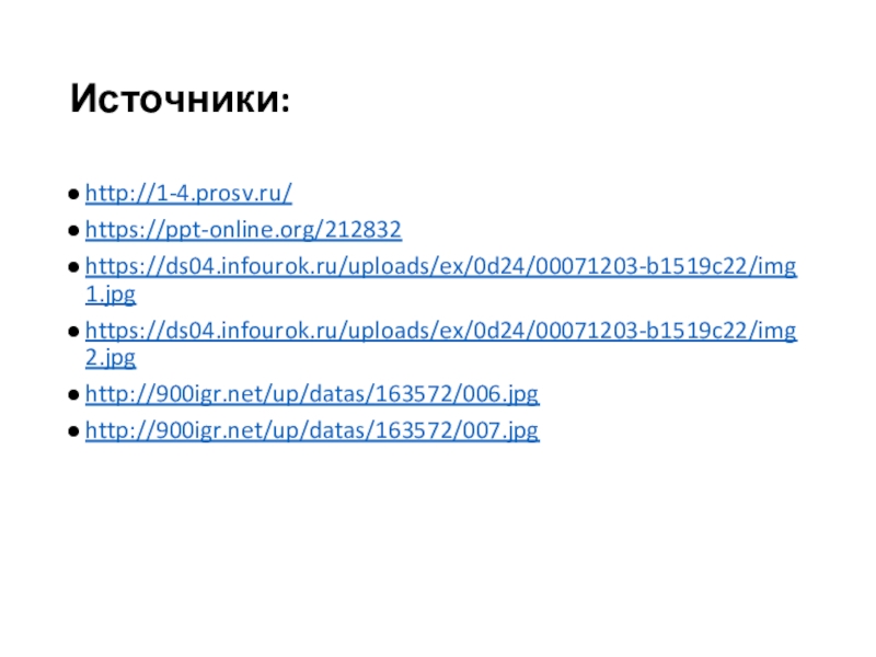 Источники:http://1-4.prosv.ru/https://ppt-online.org/212832https://ds04.infourok.ru/uploads/ex/0d24/00071203-b1519c22/img1.jpghttps://ds04.infourok.ru/uploads/ex/0d24/00071203-b1519c22/img2.jpghttp://900igr.net/up/datas/163572/006.jpghttp://900igr.net/up/datas/163572/007.jpg