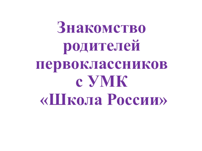 Слайд 1Знакомство родителей первоклассников с УМК «Школа России»