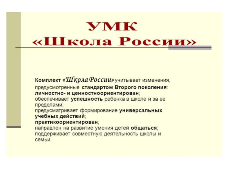 Презентация, доклад УМК Школа России .