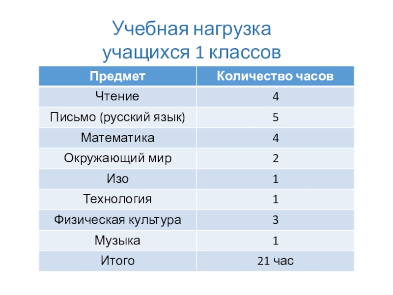 Учебная нагрузка учащихся 1 классов
