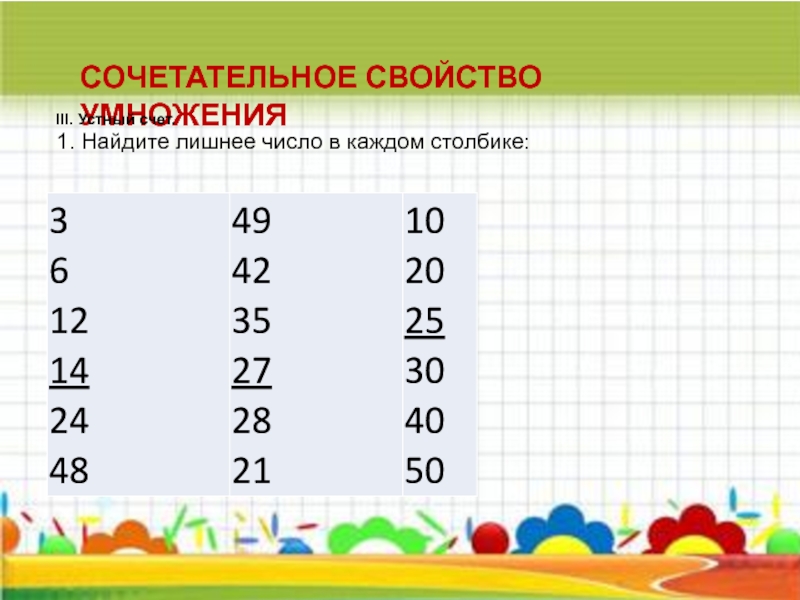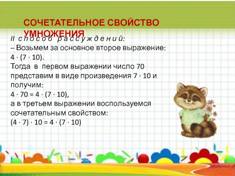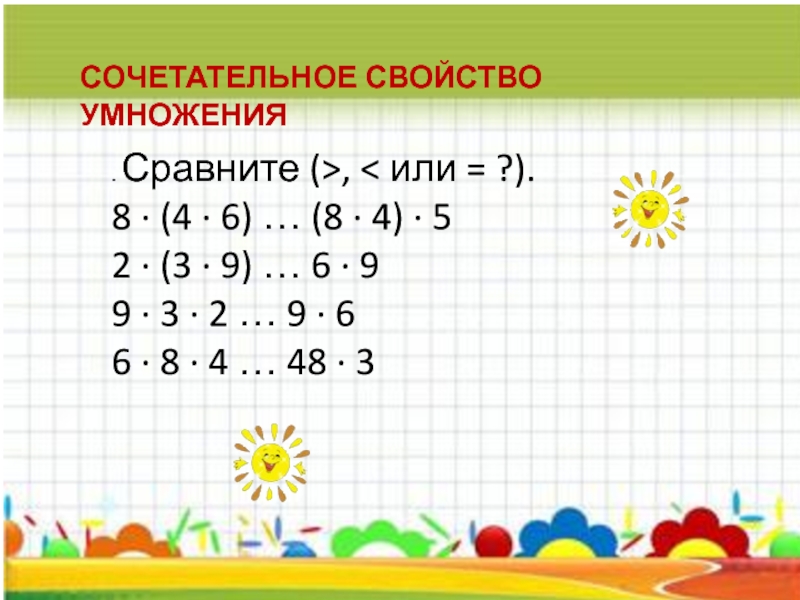 В третьем выражении сначала воспользуемся сочетательным свойством умножения: