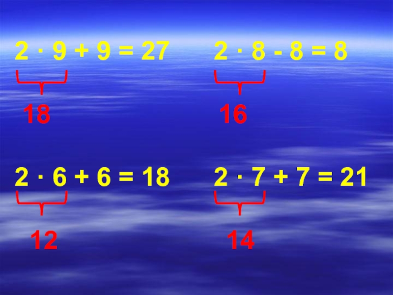 Слайд 162 · 9 + 9 = 27 2 ·