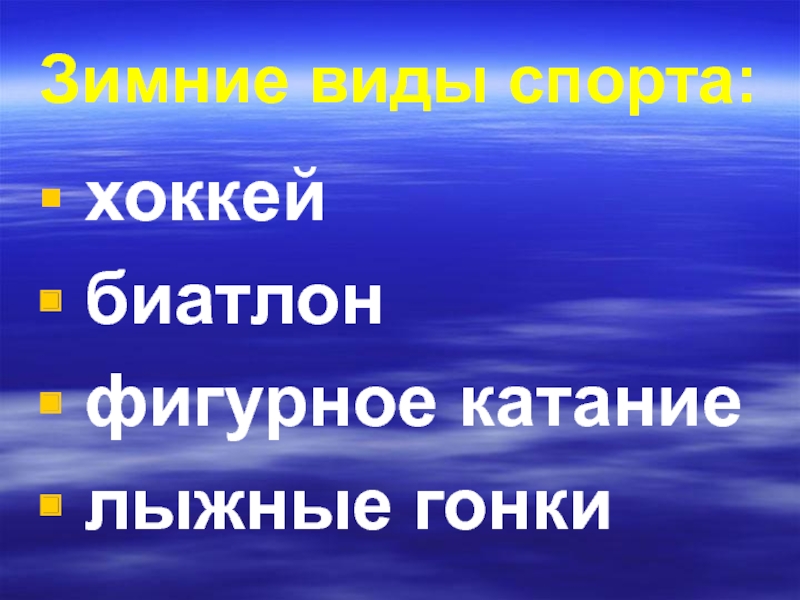 Зимние виды спорта: хоккей биатлон фигурное катание лыжные гонки