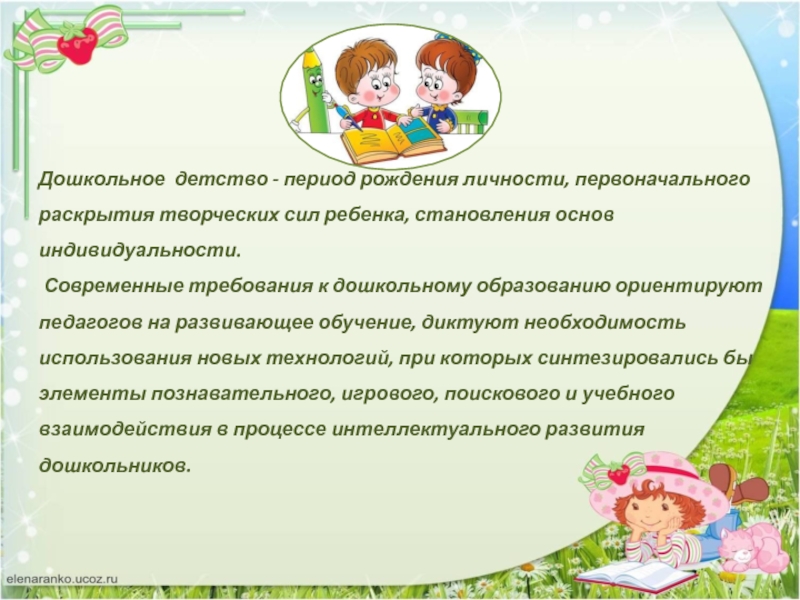 Интенсивное развитие интеллекта в дошкольном возрасте повышает процент обучаемости детей в школе. Ведь важно не только, какими знаниями владеет ребенок к поступлению в образовательное учреждение, а готов ли он к их получению, умению рассуждать, делать выводы, системно мыслить, понимать происходящие закономерности.