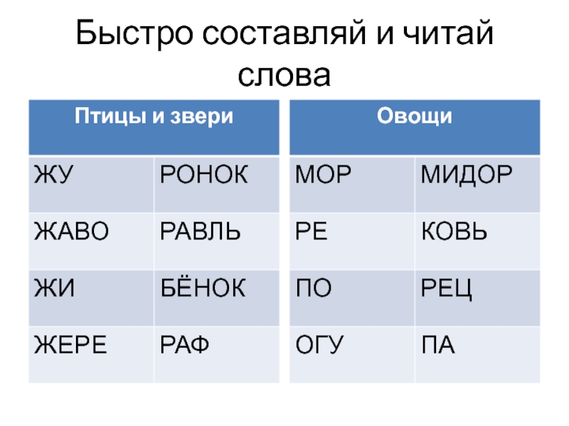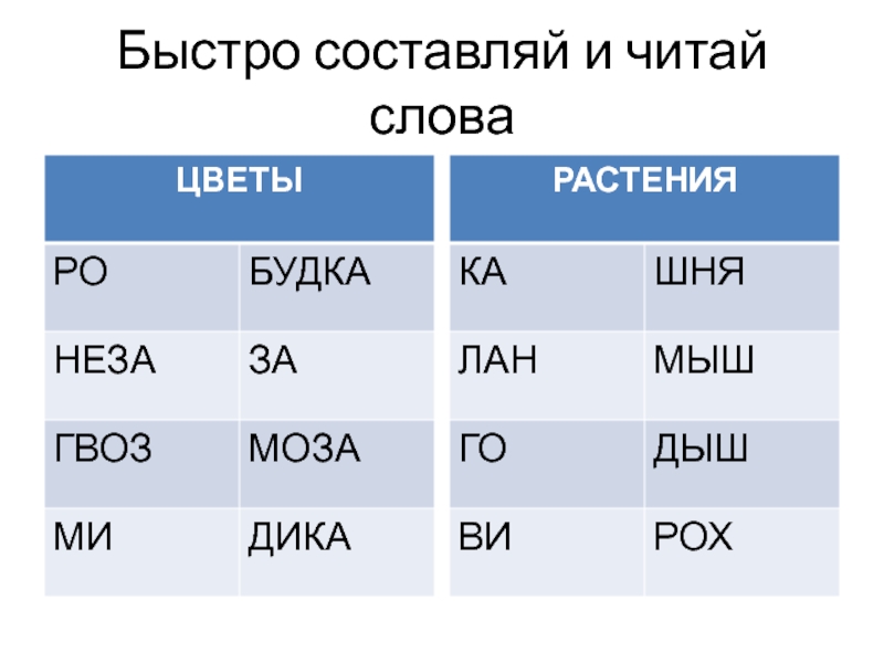 СОСТАВЛЯЙ И ЧИТАЙ СЛОВА