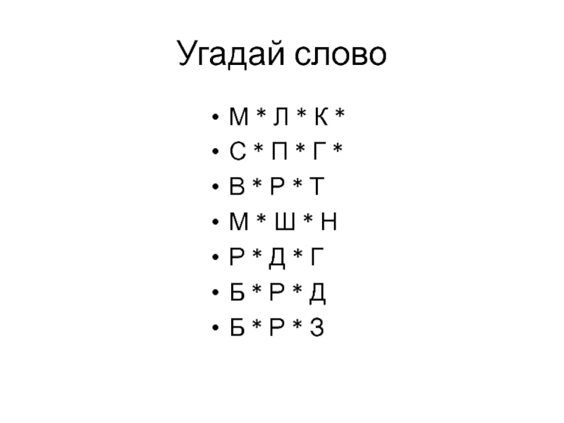 Угадай словоМ * Л * К *С * П * Г *В * Р * ТМ *