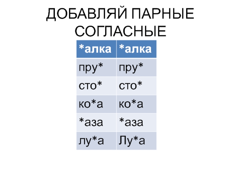 Слайд 8ДОБАВЛЯЙ ПАРНЫЕ СОГЛАСНЫЕ
