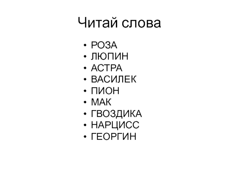 Читай словаРОЗАЛЮПИНАСТРАВАСИЛЕКПИОНМАКГВОЗДИКАНАРЦИССГЕОРГИН