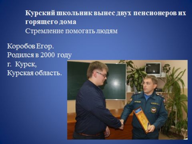 Слайд 13К счастью, их крики услышал 14-летний Николай Константинов, ученик 8-го класса
