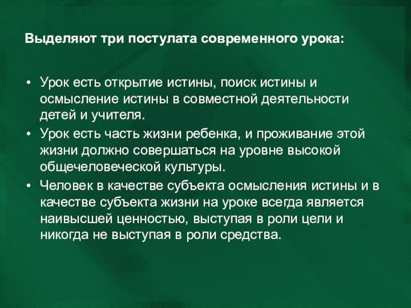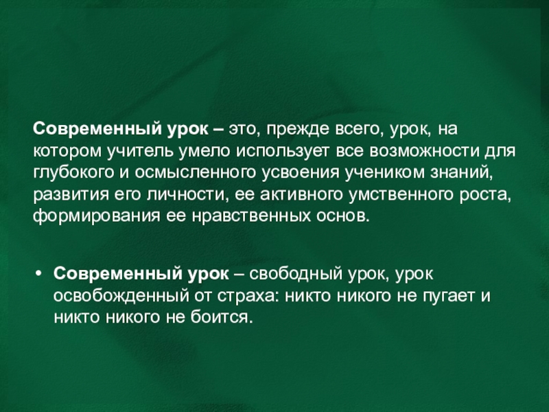Современный урок – свободный урок, урок освобожденный от страха: никто никого не пугает и никто никого не боится.