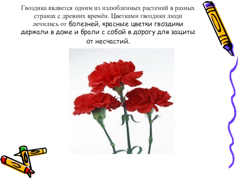 Слайд 10Гвоздика является одним из излюбленных растений в разных странах с древних