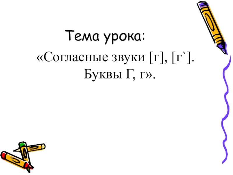 Тема урока:«Согласные звуки [г], [г`]. Буквы Г, г».