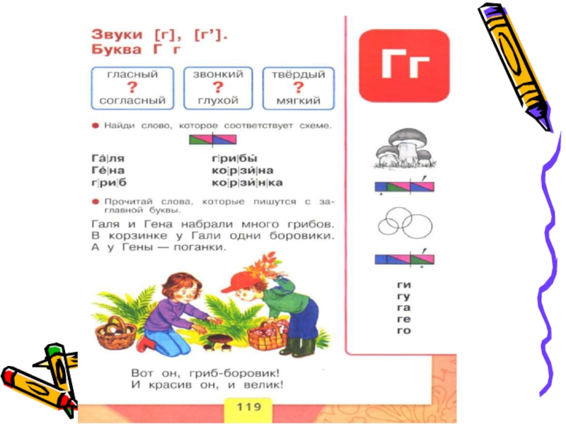 «Согласные звуки [г], [г`]. Буквы Г, г».