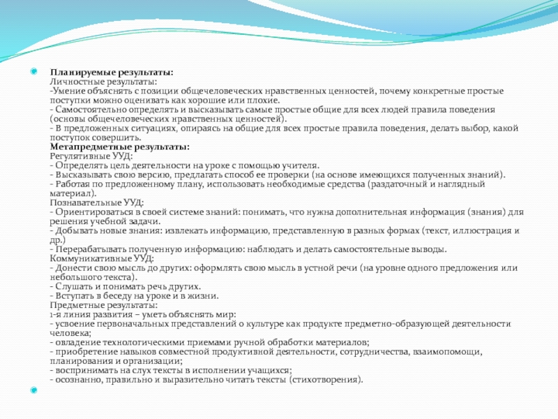- Самостоятельно определять и высказывать самые простые общие для всех людей правила поведения (основы общечеловеческих нравственных ценностей).