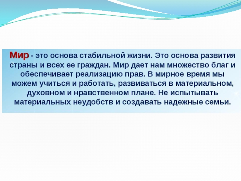 Слайд 6Мир всегда был и есть необходимостью всего человечества. Все люди нашей