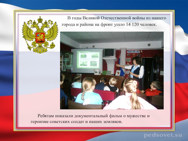 Ребятам показали документальный фильм о мужестве и героизме советских солдат и наших земляков.