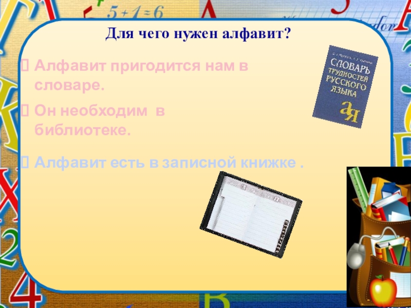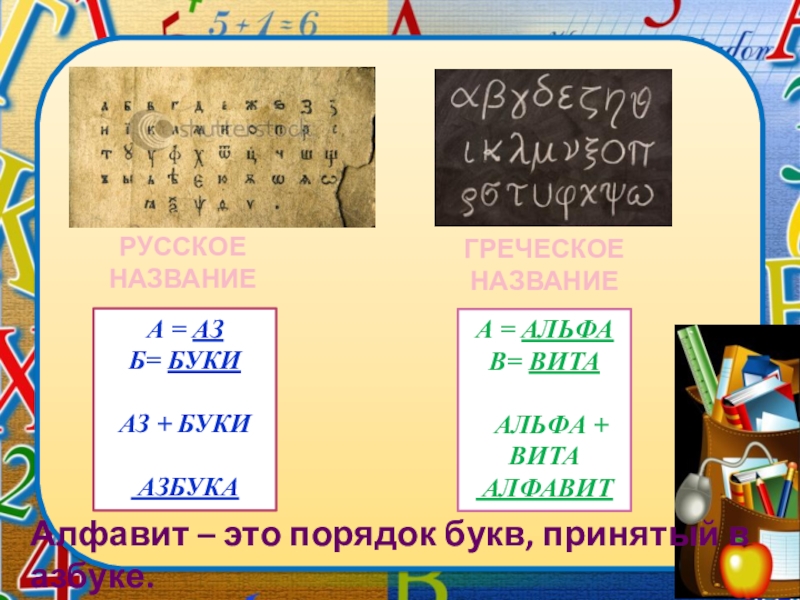 Алфавит – это порядок букв, принятый в азбуке.