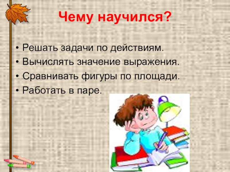 Это сайт презентаций, где можно хранить и обмениваться своими презентациями, докладами, проектами, шаблонами в формате PowerPoint с другими пользователями. Мы помогаем школьникам, студентам, учителям, преподавателям хранить и обмениваться учебными материалами.