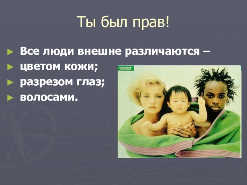 У азиатов, живущих в степях и пустынях, узкие глаза защищают от сильных ветров.