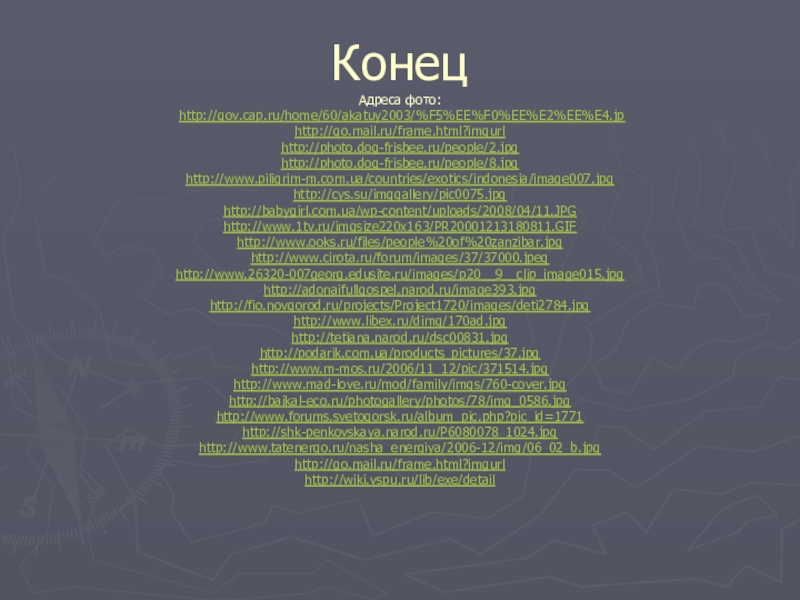 Это сайт презентаций, где можно хранить и обмениваться своими презентациями, докладами, проектами, шаблонами в формате PowerPoint с другими пользователями. Мы помогаем школьникам, студентам, учителям, преподавателям хранить и обмениваться учебными материалами.