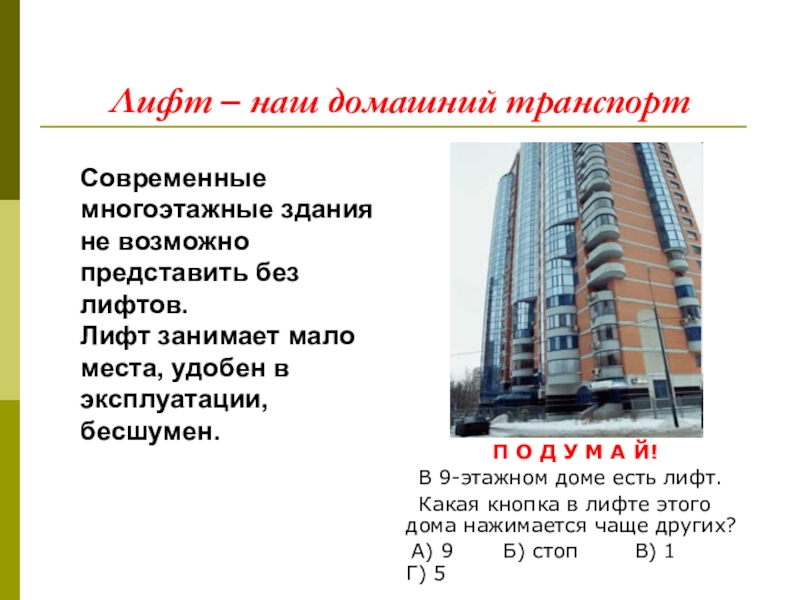 Первый безопасный лифт