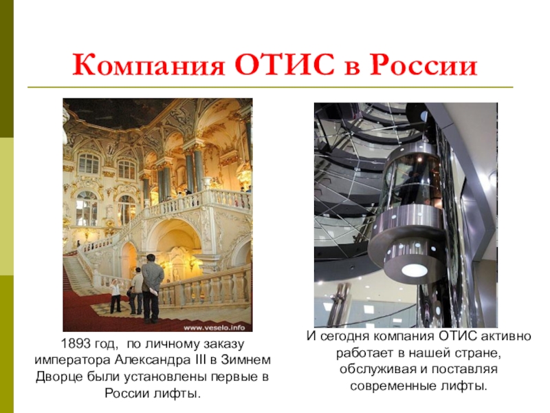 И сегодня компания ОТИС активно работает в нашей стране, обслуживая и поставляя современные лифты.