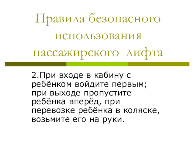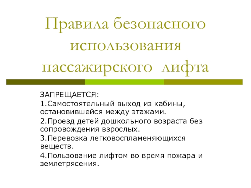 пользования лифтом