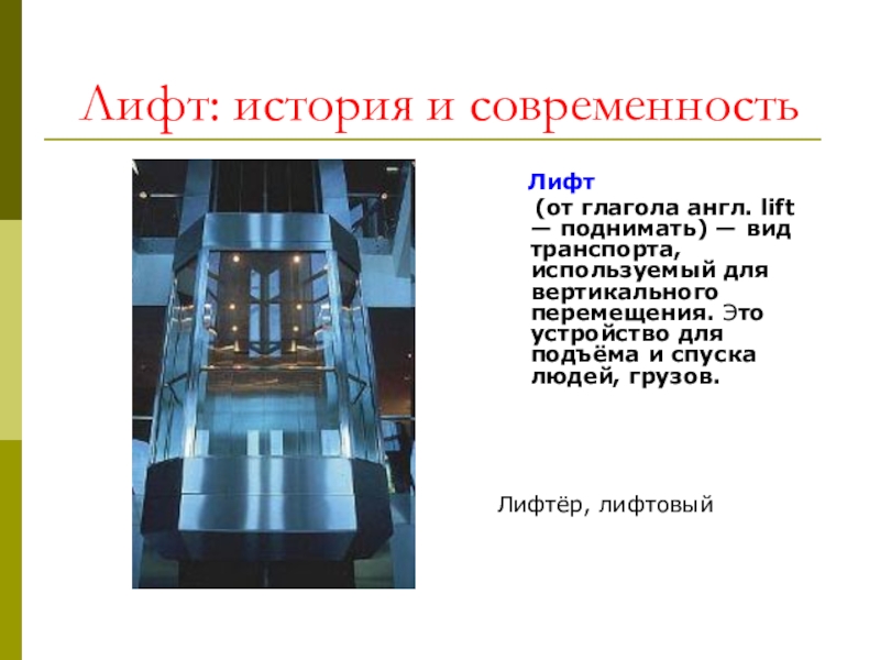 создания лифта и о его видах