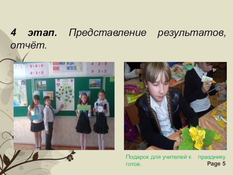 4 этап. Представление результатов, отчёт.Подарок для учителей к  празднику готов.