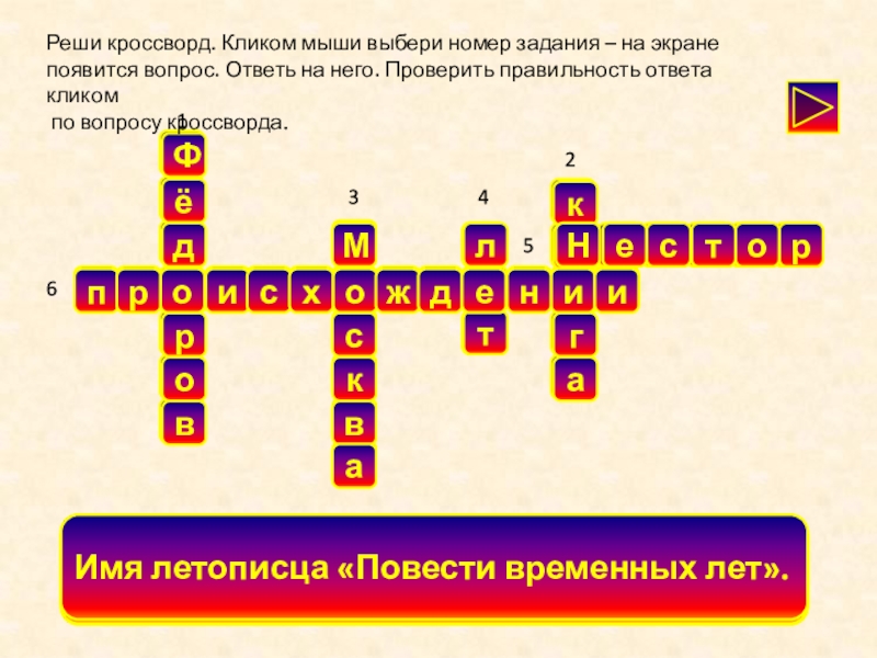 Реши кроссворд. Кликом мыши выбери номер задания – на экране