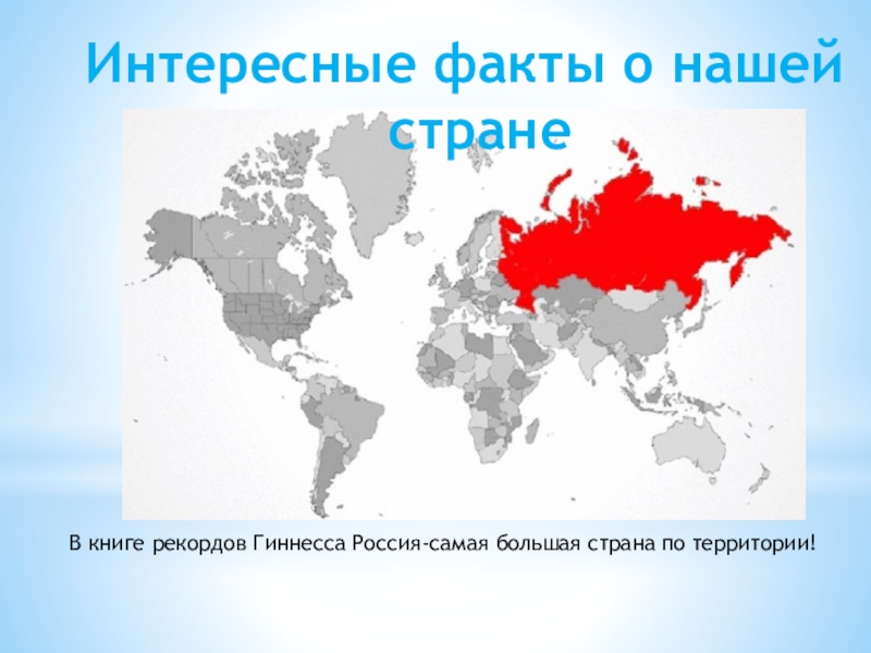 Интересные факты о нашей странеВ книге рекордов Гиннесса Россия-самая большая страна по территории!