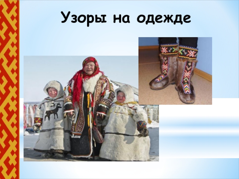 Слайд 7Узоры на одежде