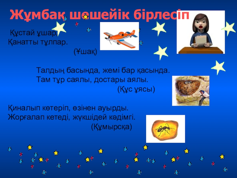 Жұмбақ шешейік бірлесіп Құстай ұшар,Қанатты тұлпар.