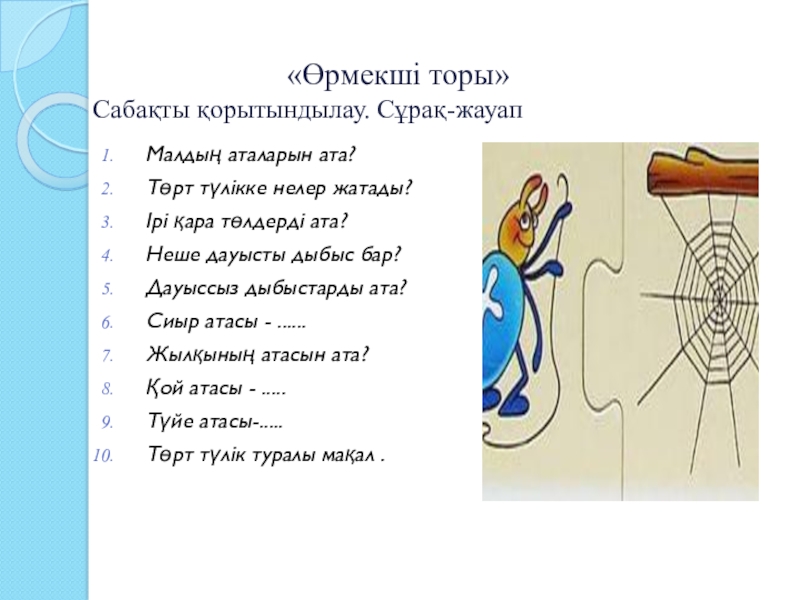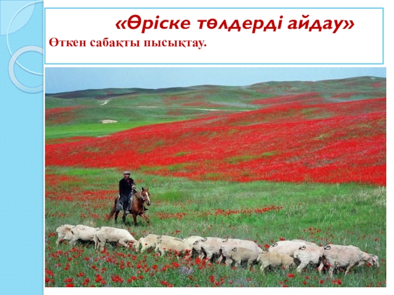 Сабақта қолданылатын әдістер: «Айналмалы бекет» әдісі, «Көрме» әдісі, «Төлдерді өріске айдау», «Өрмекші торы» әдісі
