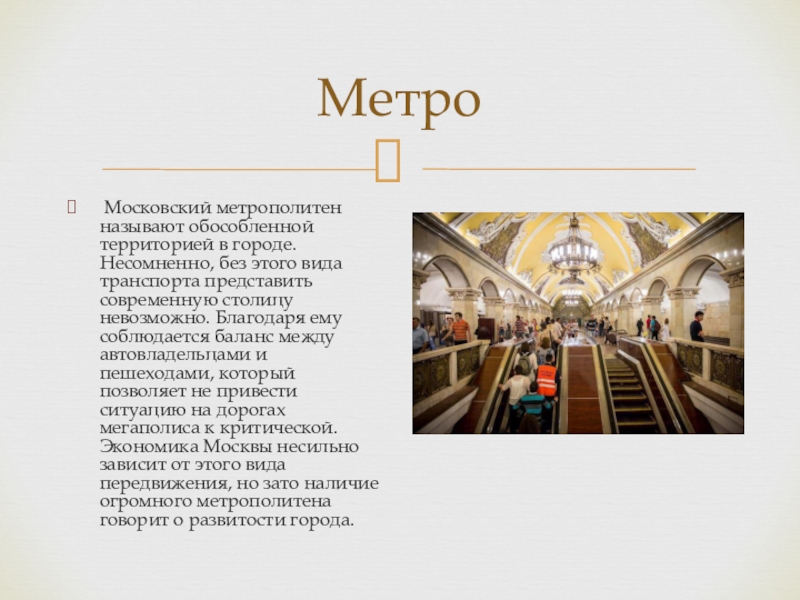Московский метрополитен называют обособленной территорией в городе. Несомненно, без этого