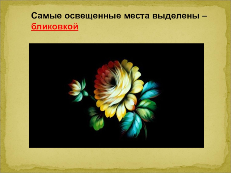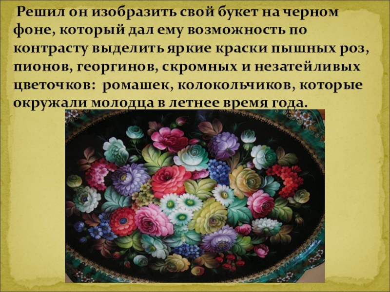 Слайд 9 Решил он изобразить свой букет на черном фоне, который дал