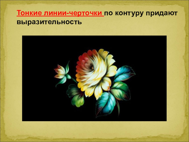 Слайд 16Тонкие линии-черточки по контуру придают выразительность