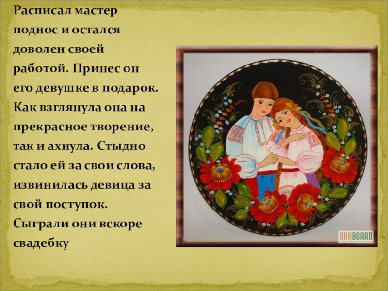 Слайд 10Расписал мастер поднос и остался доволен своей работой. Принес он его