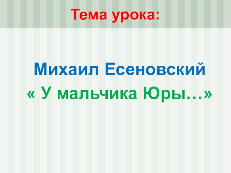 Тема урока:Михаил Есеновский « У мальчика Юры…»