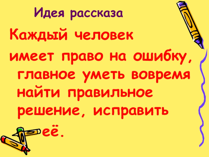 Идея рассказаКаждый человек имеет право на ошибку, главное уметь вовремя найти правильное решение, исправить