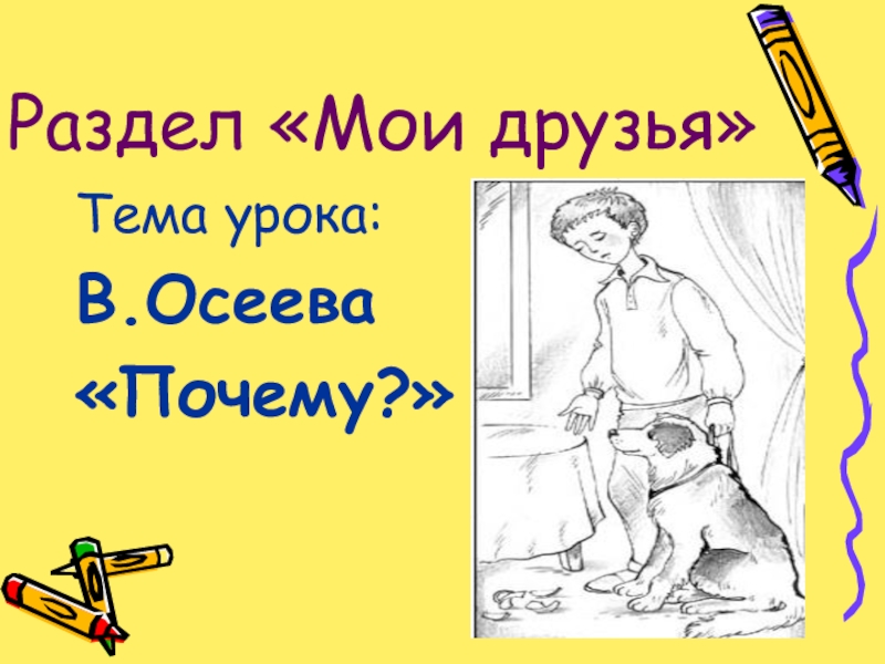 Раздел «Мои друзья»Тема урока: В.Осеева«Почему?»