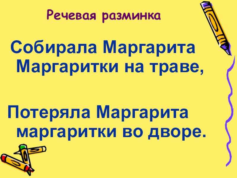 Речевая разминка Собирала Маргарита Маргаритки на траве,Потеряла Маргарита маргаритки во дворе.