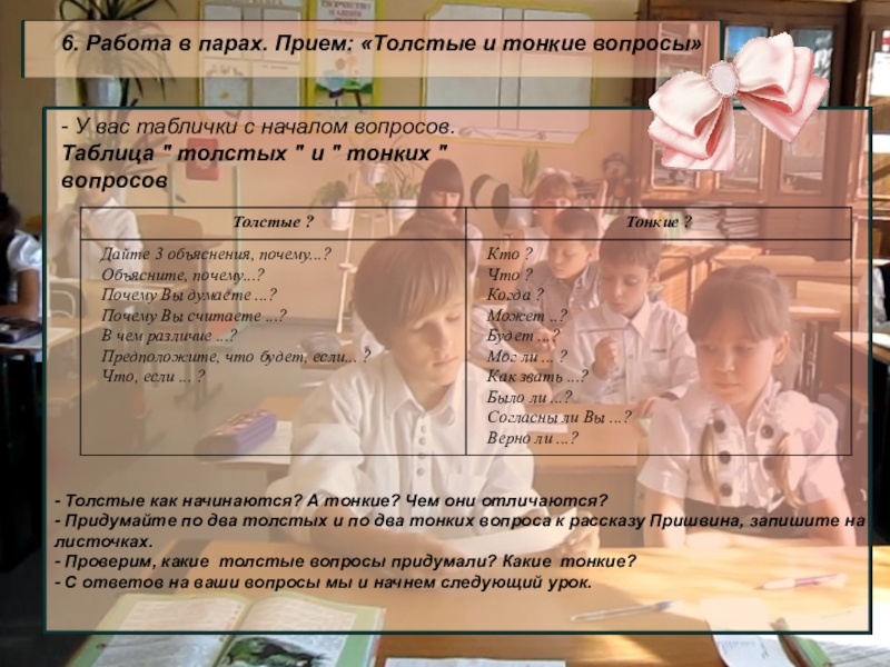 6. Работа в парах. Прием: «Толстые и тонкие вопросы»