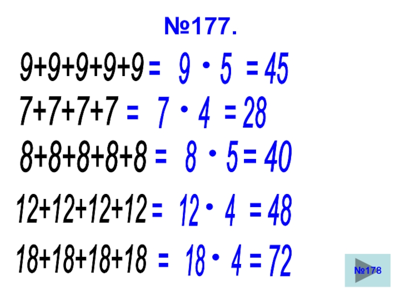 №177.9+9+9+9+98+8+8+8+87+7+7+712+12+12+1218+18+18+18№178= 45= 28= 40= 48= 72