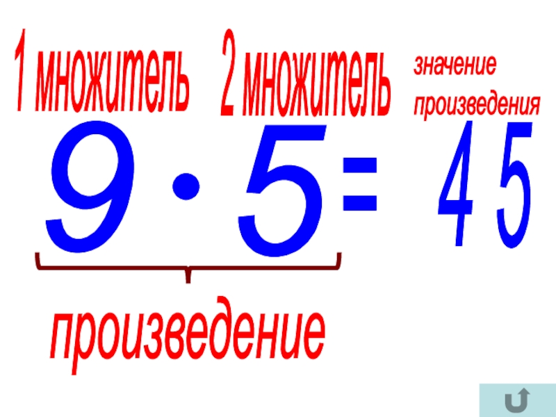 95произведение1 множитель2 множитель=  4 5значение  произведения