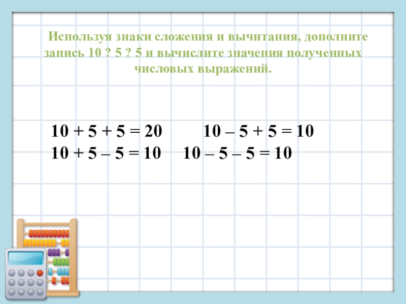 10 + 5 – 5 = 10 10 – 5 – 5 = 10